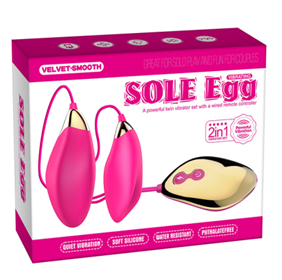 Виб­рояйца "Sole Egg" - это 2 супер мощ­ных виб­ро­яйца с пультом управления. Одно яйцо абсо­лютно глад­кое, с наименьшим диаметром и имеет специальный выступ, вто­рое с наиболее большим диаметром, гладкое!